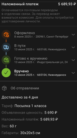 Пришло всё быстро большое спасибо,