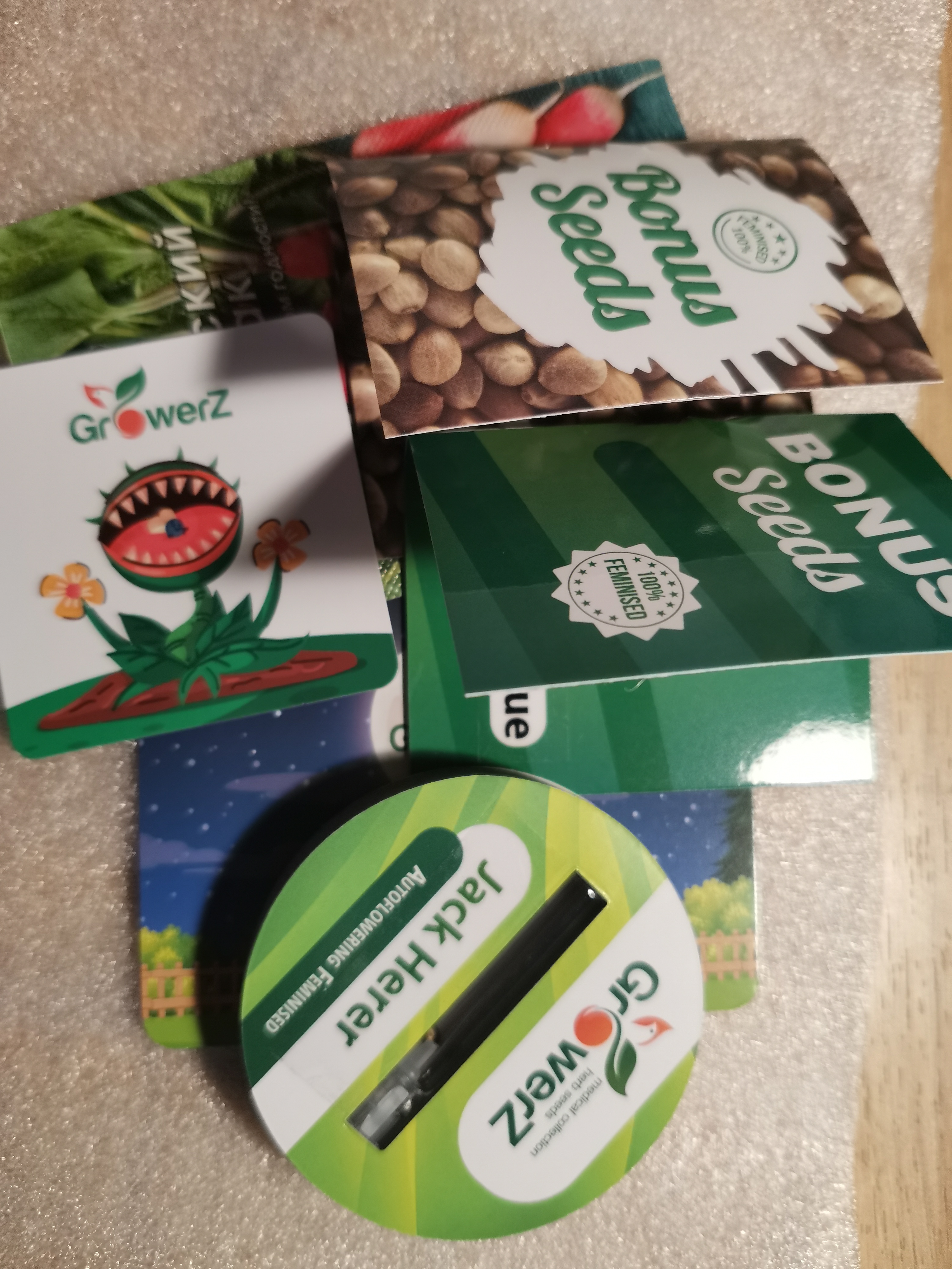 Здравствуйте был получен заказ (благополучно). При проращивании столкулись впервые с такой проблемой... При стандартном замачивании на ночь оказалось, что одна семечка Jack Herer Auto Fem На утро заплесневела. Была попытка посадить, но семочка не прижилась, Обращались в службу поддержки, обещали возместить. ( Брак есть везде это нормально) В последствии дополню отзыв. Но при всём при этом, могу рекомендовать данный магазин, поскольку бонысы с лихвой перекрывают мелкие недостатки!