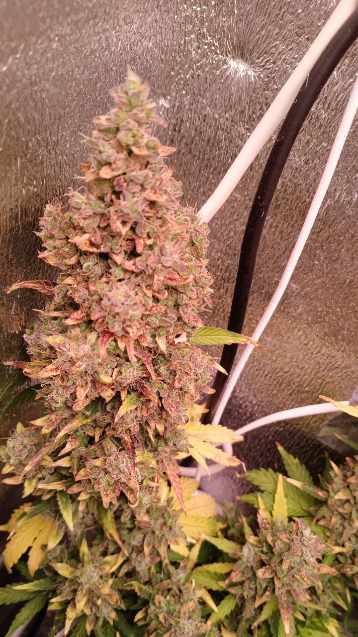 Для наибольшего количества трихом, и преобладания оранжево фиолетовых оттееков,снизил ночные на 10 градусов,перед харвом.больше со2 подача в ночь.получилось нечто.а да,последние 3,4 дня,держал в полнои темноте 24 /0