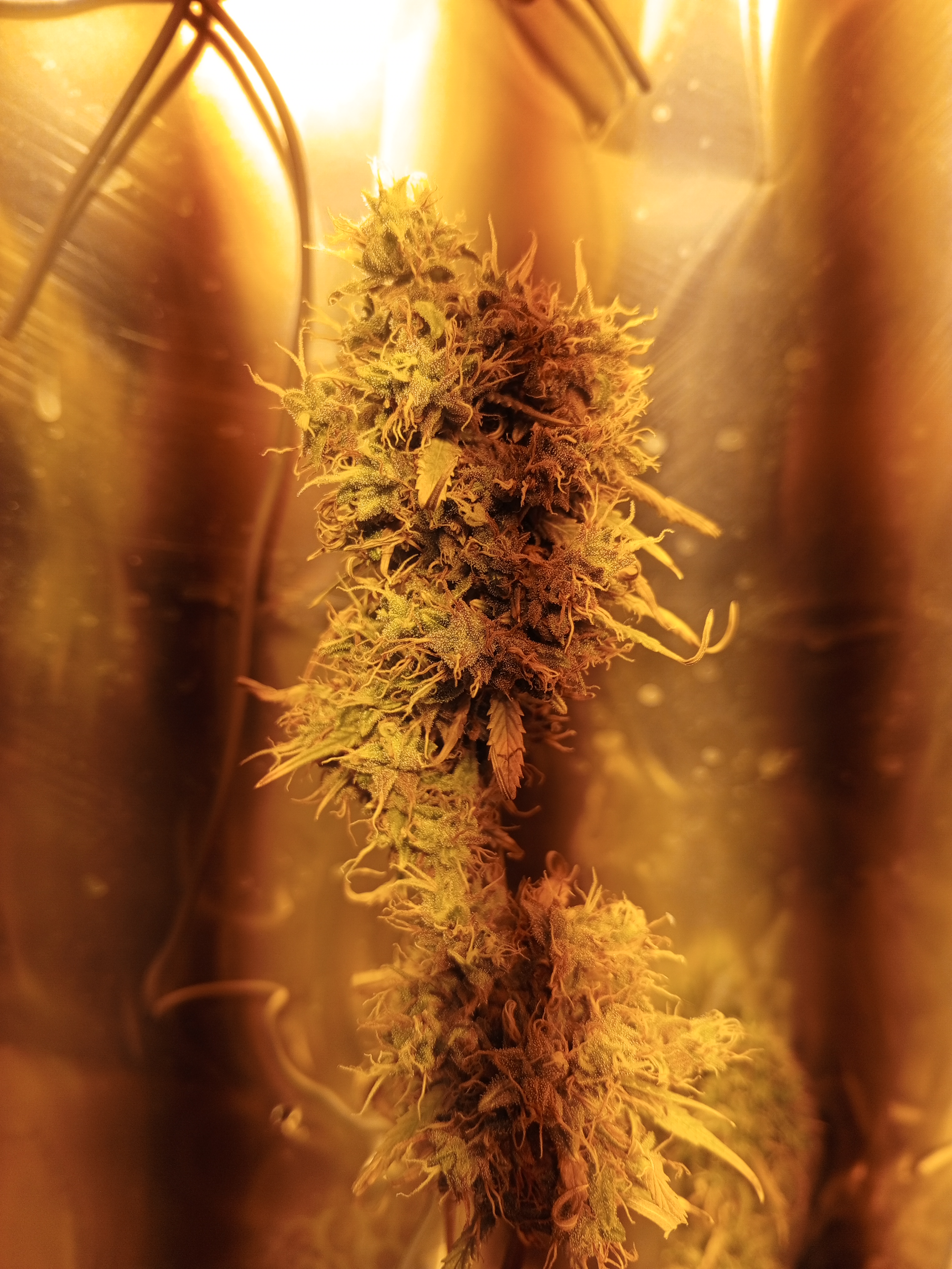 Росла в индоре под Днат400. Зацвела на второй месяц, цвела четыре. За это время я её почти похоронил, оживил, пережила грибных комариков, трипсов, на веге замерзала, перегревалась не единожды. На середине цвета начал подрезать и курить т.к. листья все опали во второй раз окончательно и шишечки перестали цвести и пожелтели. Почти половину скурил, приподнял лампу, и она кааак начала цвести! Таких цветов я не видел, там чашечка на чашечке ёлочкой растёт. Короче за месяц скурил наверное 60-70. И ещё висит сохнет примерно двухлитровая банка. Эффект однозначно хай, но перебрать легко т.к. догоняет позже.