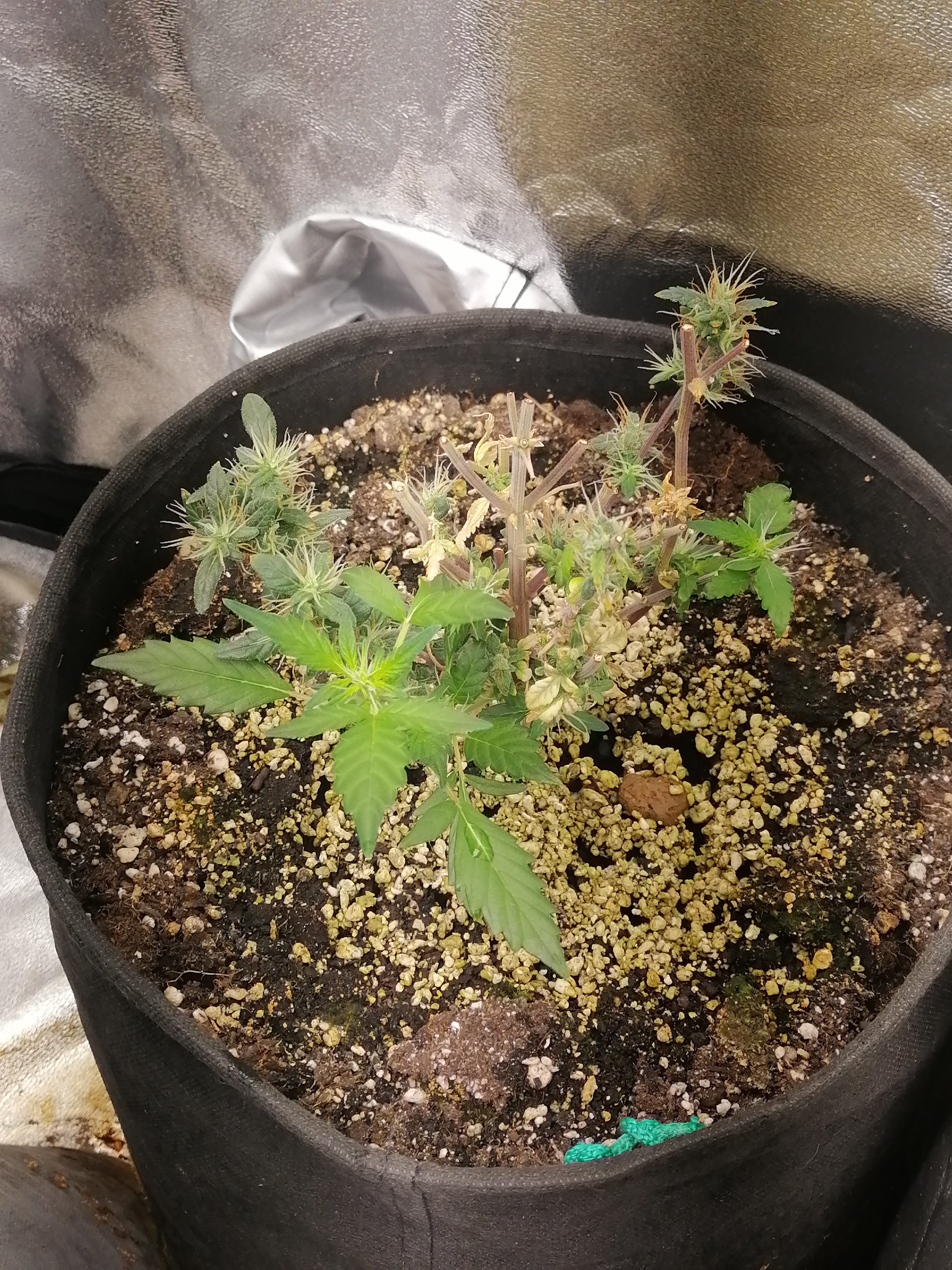 Все Гуд, цветёт и пахнет, по времени задержались , сейчас уже 72 день, Харвест недели через 3 только, поэтому тем , кто расчитывает на 2 месяца, могу с уверенностью заявить, что за 2 месяца они не успеют. По удобрениям органика биобиз гроу и блум , так же добавил калмаг от гхе в конце веги и по сей день. фосфорус плюс от хеси начал лить примерно на 2-3 неделе цвета и лью до сих пор(очень советую всем) шишки стали намного пышнее , ветки усыпаны ими сверху до низу. Удобры лил по таблице. Умные горшки(из ткани ) 15л. Полив раз в два-три дня 5л на куст. Прикрепляю фото ночной съемки , ближний куст лсд авто, дальний ак авто подарочный. В ожидании хорошего урожая, первый гров, относился к растихам как к детям со всей душой и любовью. По свету: Сам собрал 4 лампы по 50вт, просто поставил диоды на радиатор от кулера , ну и естественно кулер как охлаждение. Температура днём 29-31, ночью 20-22. Влажность на веге держал 60-80%, на цвете 30-40%. По стрессовым тренировкам делал Топпинг на 29 дне, растягивал боковые колы для лучшего попадания света. На 60 дне обрезал все нижние слабые соцветия, которым не хватает света, обрезал большие лопухи , а так же каждый раз убираю пожелтевшие листья. Трихом очень много, плотность шишек с каждым днём все больше и больше, очень многое узнал во время грова и сейчас имею познания которые пригодятся мне в будущем. Еще понял, что на самопальных лампах можно растить и не задумываться о том, что растихам мало света. Всем мир, семянычу спасибо за первый опыт, а я буду двигаться дальше.