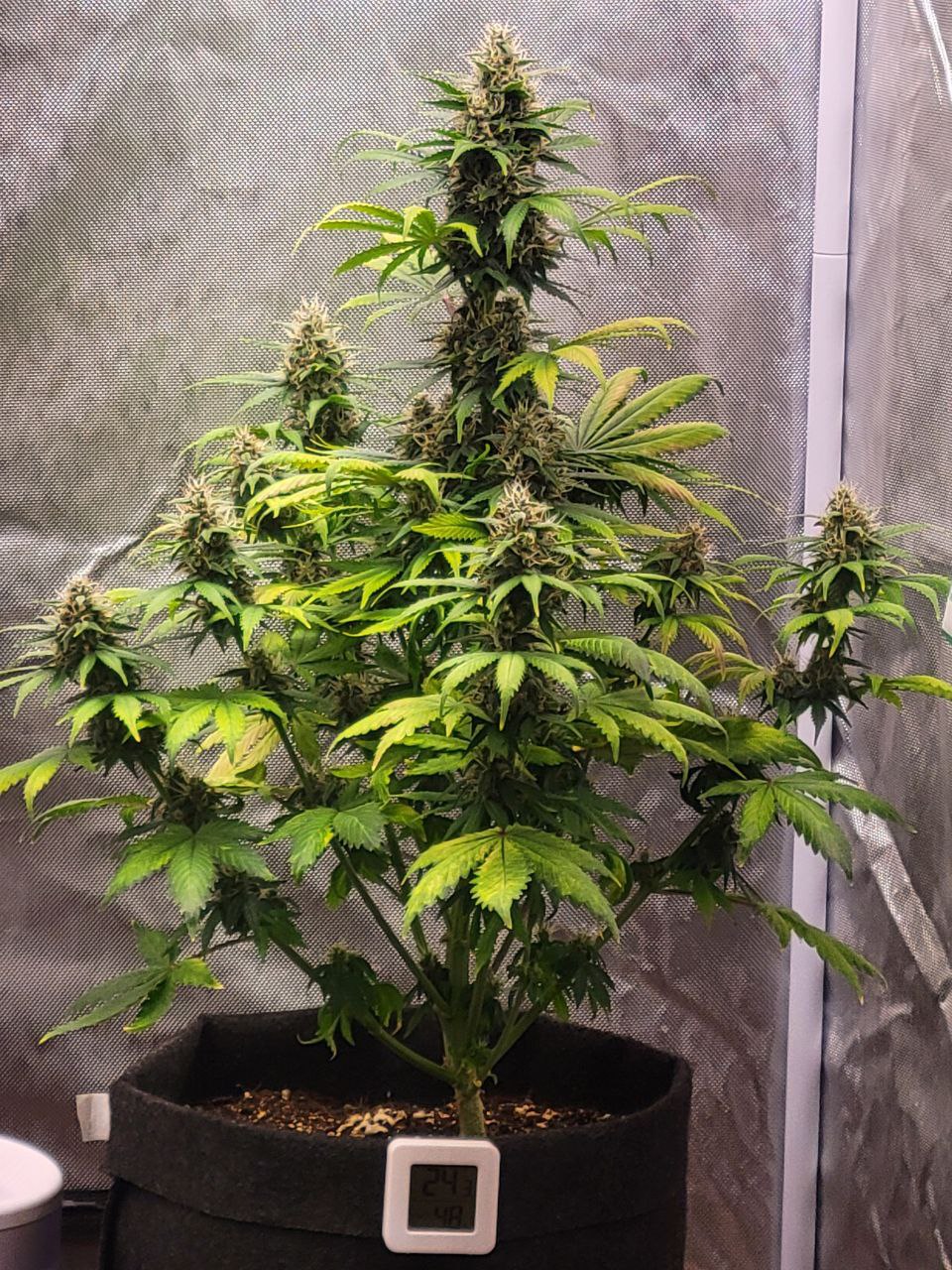 Это был мой первый гров, и куст поменял 2 домика, вегетация у него прошла в гроубоксе 40х40 и лампой 120 вт, а потом пересадил в в 60х60 и лампа 180 вт (поэтому он получился такого невысокого роста) Куст получился пышный весь в шишках! На фото посторался показать все стадии роста. Магаз топ, буду заказывать ещё!